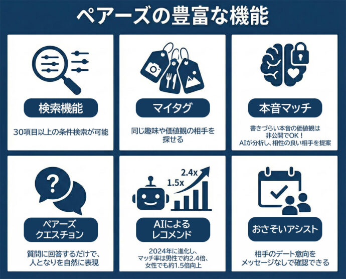Pairsが人気の理由にはいくつかのポイントがあります。