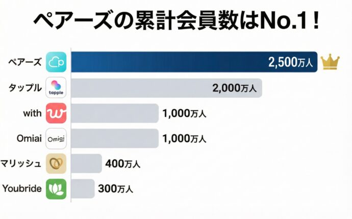 Pairsの最大の強みは、圧倒的な会員数です。